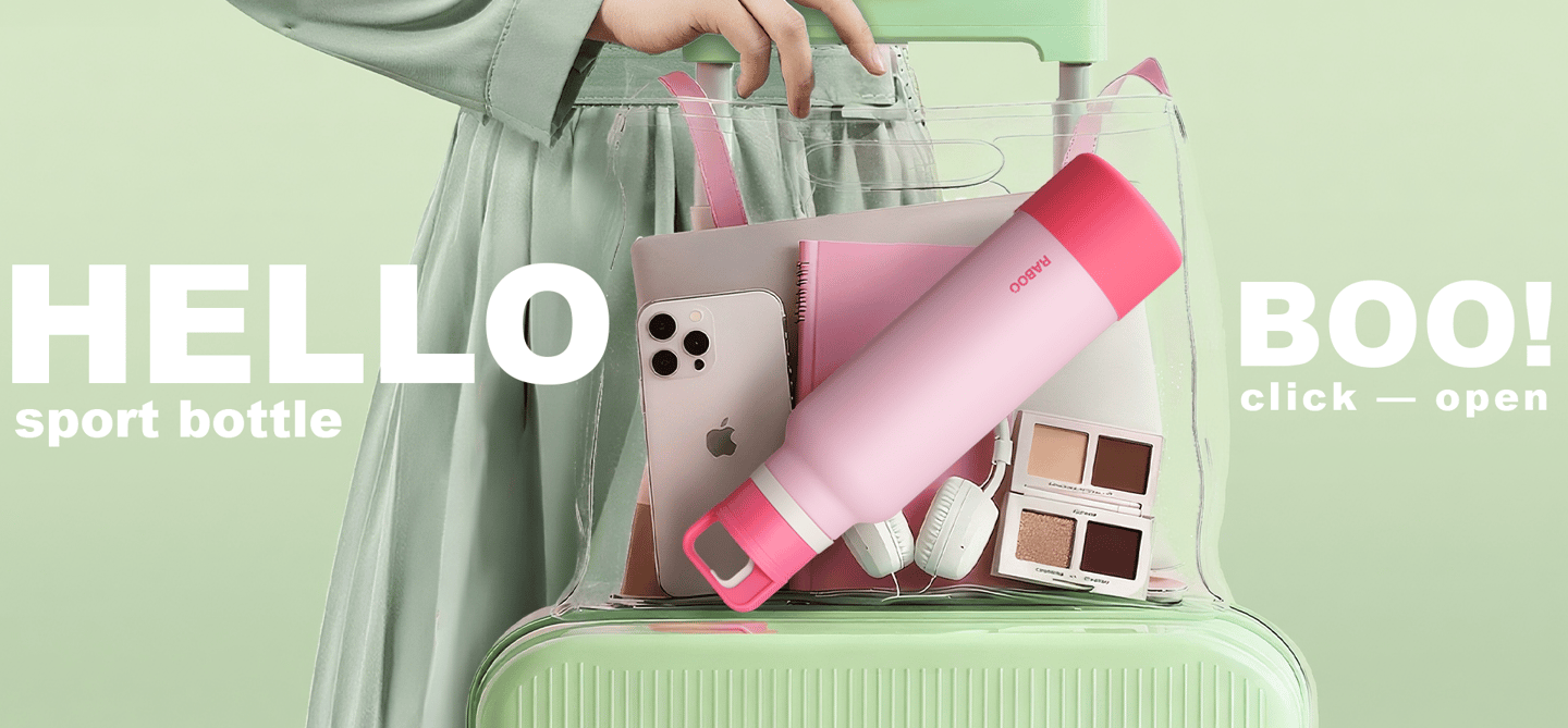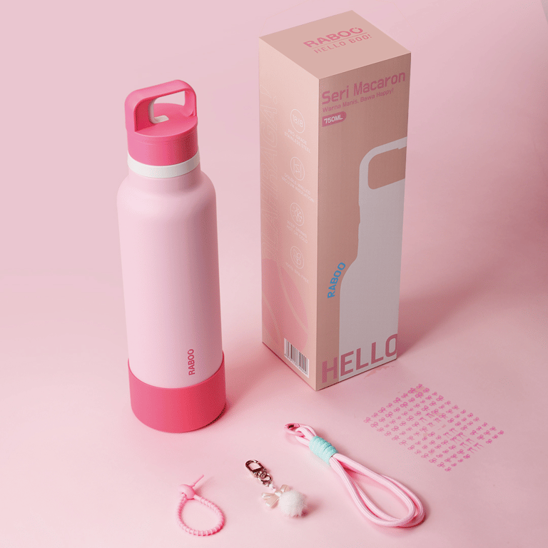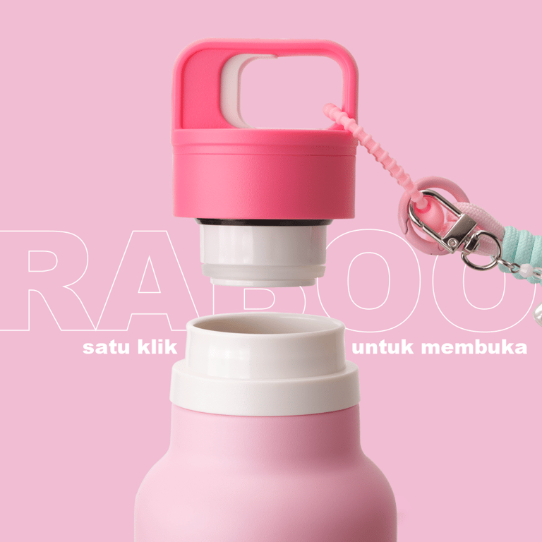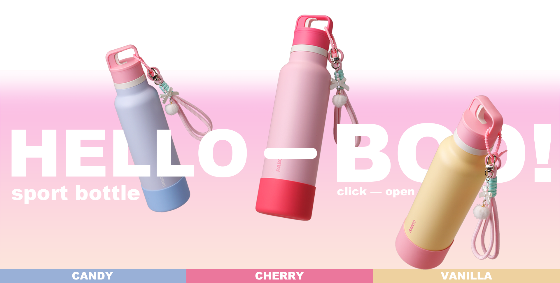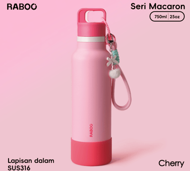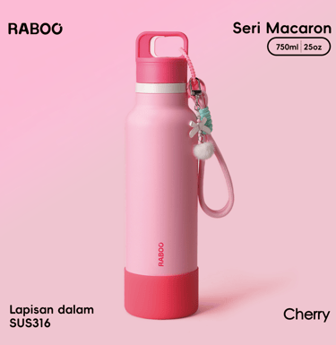 RABOO Tumbler Olahraga Macaron 750ML Satu-Klik untuk Buka - CHERRY