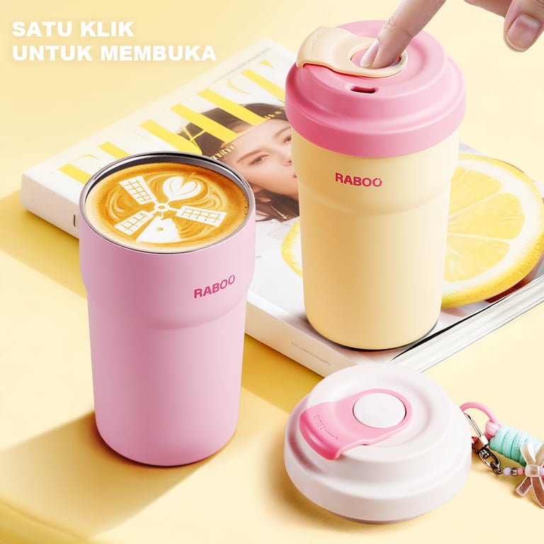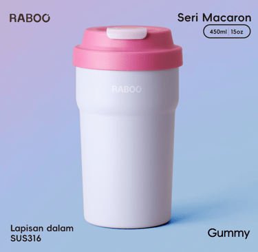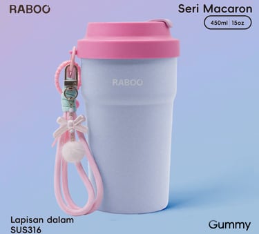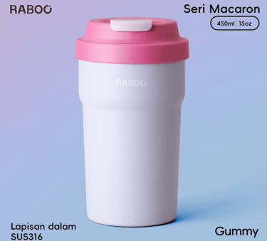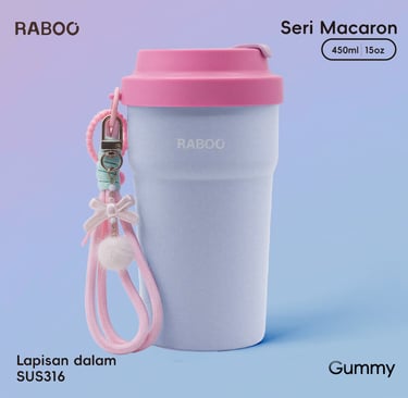 RABOO Tumbler Kopi Macaron 450ML Satu-Klik untuk Buka - GUMMY