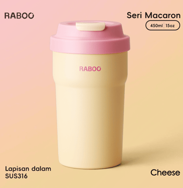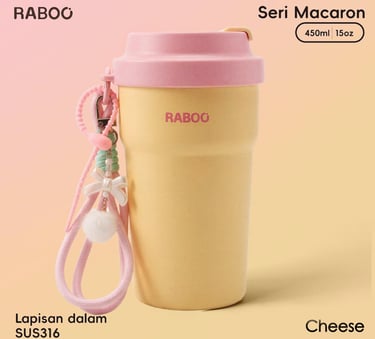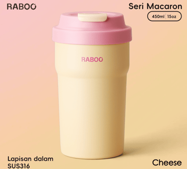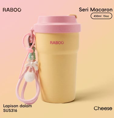 RABOO Tumbler Kopi Macaron 450ML Satu-Klik untuk Buka - CHEESE