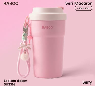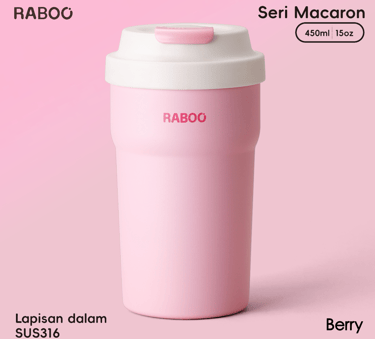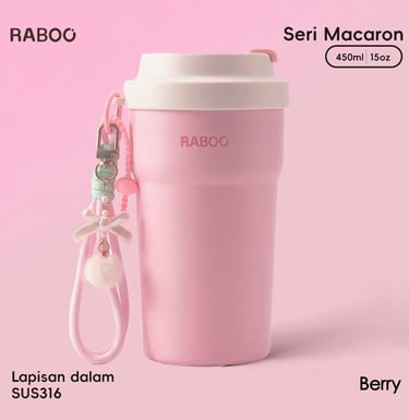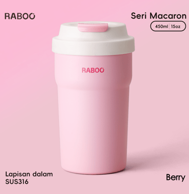 RABOO Tumbler Kopi Macaron 450ML Satu-Klik untuk Buka - BERRY