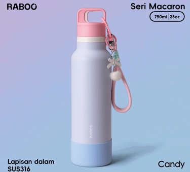 RABOO Tumbler Olahraga Macaron 750ML Satu-Klik untuk Buka - CANDY