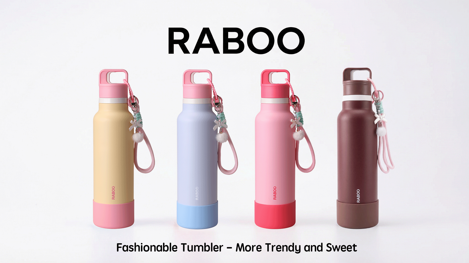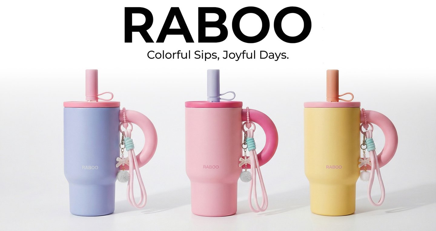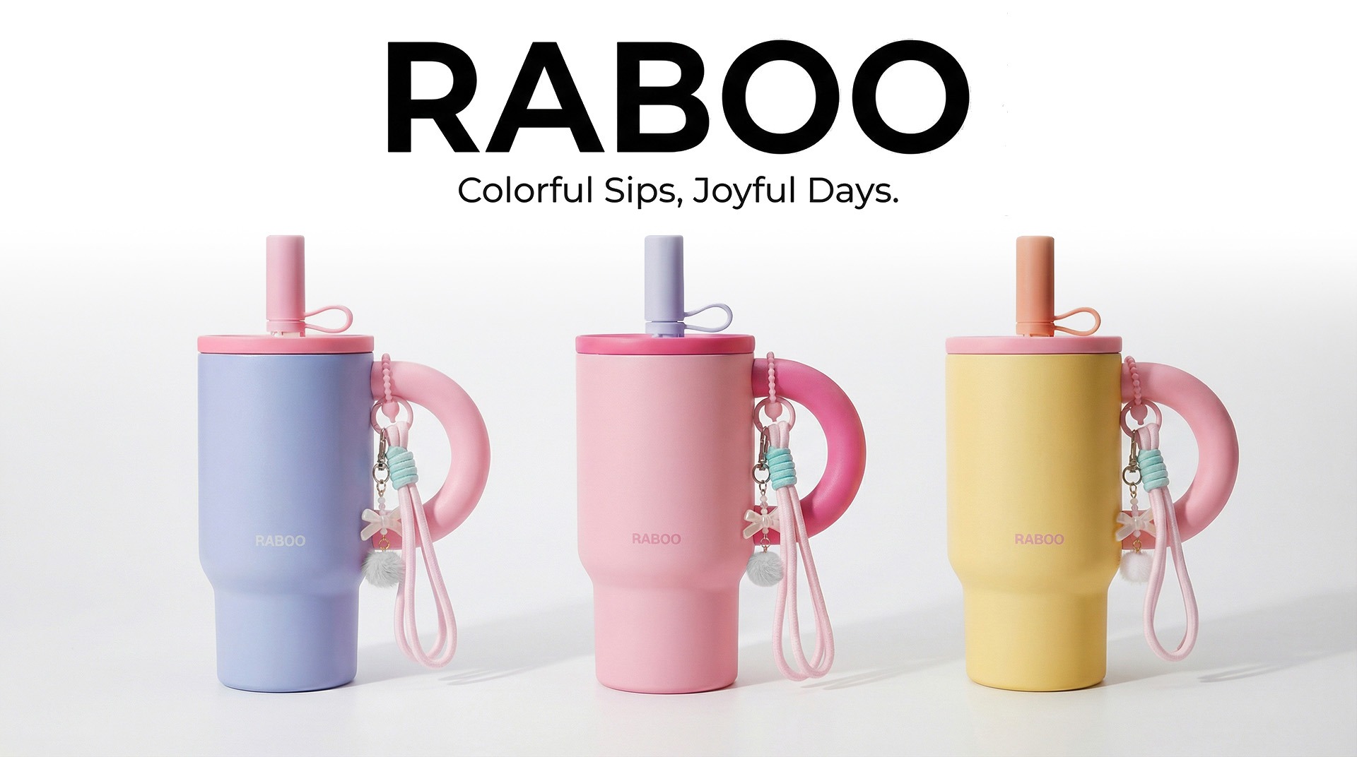 RABOO Tumbler Olahraga Macaron 750ML Satu-Klik untuk Buka - CHERRY