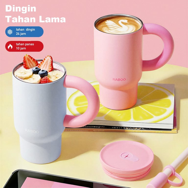 RABOO Tumbler Kopi Macaron 450ML Satu-Klik untuk Buka - BERRY