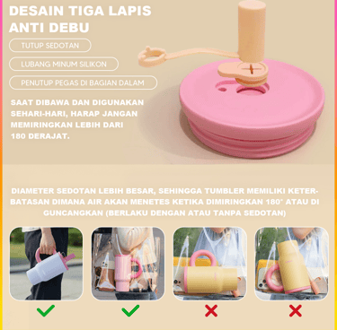 Paket DIY Combo >> Kreasikan TumblerMu semakin cantik Sedotan berdiameter besar >> cocok untuk semua jenis minuman Desain tiga lapis anti debu >> tutup sedotan — lubang minum silikon — penutup pegas di bagian dalam